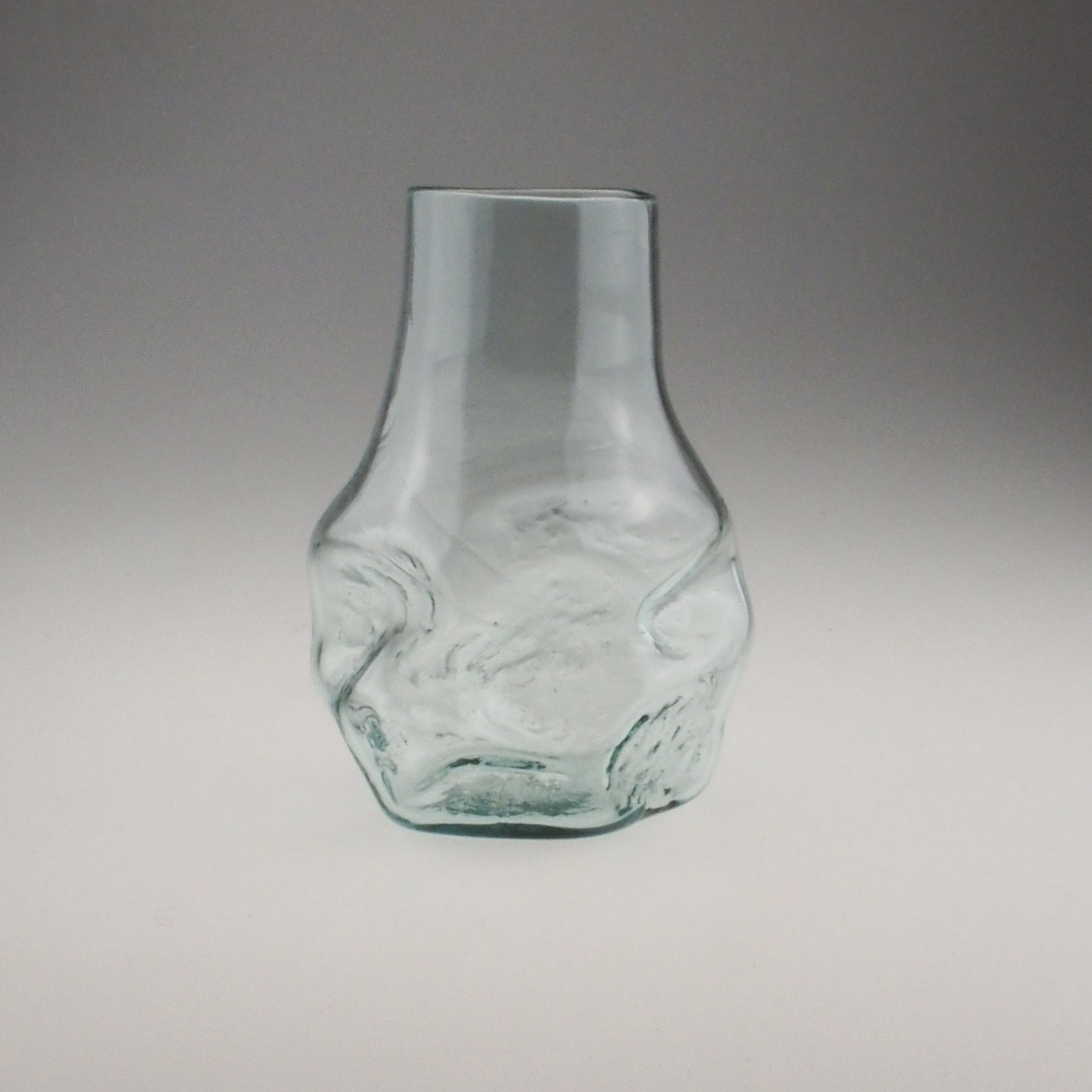 Vase soufflé en verre 100% recyclé. La partie basse est soufflée-moullée dans de petits blocs de grés des Vosges. Chaque vase possède une forme unique.